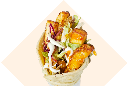 Deep fried, crispy halloumi fries, lettuce, sumac infused red onions & fries. Includes sourdough flatbread, creamy mayo and sweet chilli.