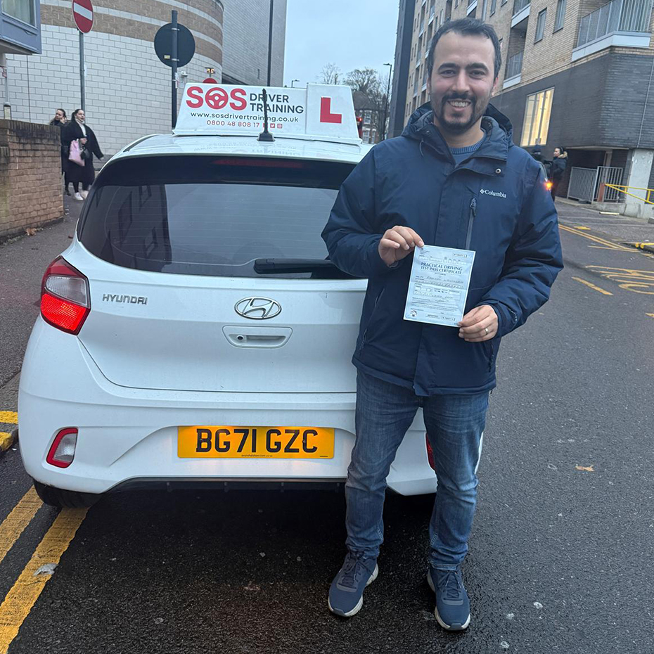 I took my lessons with Mustafa. And I could say within the 2 months I’ve booked he made me feel more and more confident. Taught me a lot and was great all round. Big creds to him and SOS driving school